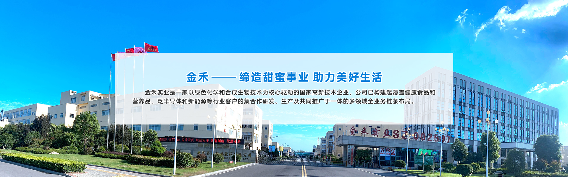 安徽金禾實業股份有限公司是一家致力于服務美好生活和先進制造,專業從事食品配料、大宗及電子化學品和功能性化工中間體的高新技術企業,是甜味劑安賽蜜、三氯蔗糖和香料麥芽酚的主要生產商。公司主營業務為食品健康配料的生產研發,新型化工材料及中間體的生產研發,大宗及電子化學品的生產研發。主要服務于食品飲料、日用消費、醫藥健康、農業環保及先進制造業等領域的客戶。下游知名客戶包括各大食品飲料及香精香料公司。公司前身為始建于1974年的來安縣化肥廠,股份制公司成立于2006年,2011年7月7日在深交所中小企業板掛牌上市,股票代碼為002597(ISIN: CNE1000015C4),于2017年12月1日納入“深港通”標的,于2018年1月2日納入深證成指成份股,連續入選“證券時報”主辦的第十一屆和第十二屆“中國中小板上市公司價值五十強”名單??偛课挥诎不粘荩瑩碛邪不諄戆布岸ㄟh鹽化工園兩個生產基地,在合肥及南京分別設有合成材料研究院有限公司和應用研發中心。